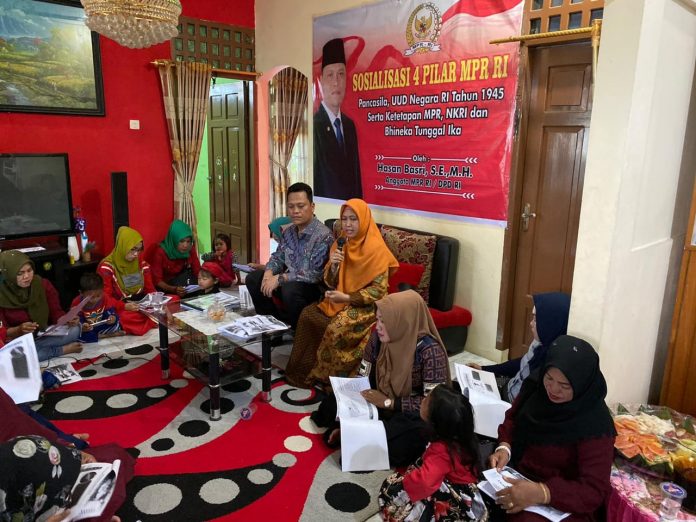 KAYANTARA.COM, TARAKAN. Wakil Ketua II Komite II DPD RI, Hasan Basri menyoalisasikan empat pilar Majelis Permusyarawatan Rakyat (MPR) RI di Kota Tarakan, Kaltara. Persisinya di kediaman Ketua Kerukunan Keluarga Pitu Ulunna Salu (KKPUS)Tarakan, H.Mulyono Karim, Kelurahan Gunung Lingkas, Tarakan Timur, Kamis (21/11/2019).