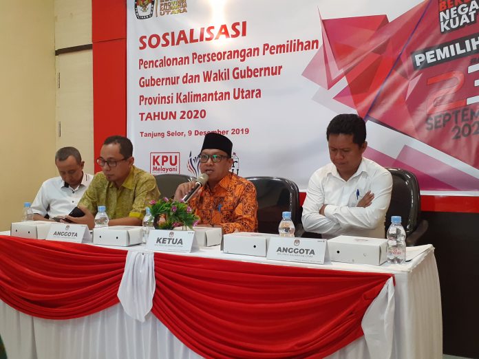 KAYANTARA.COM, TANJUNG SELOR-Komisi Pemilihan Umum (KPU) Kalimantan Utara (Kaltara) mekaksanakan sosialisasi pencalonan perseorangan Pemilihan Gubernur dan Wakil Gubernur yang dihelat 23 September 2020, Senin (9/12/2019).