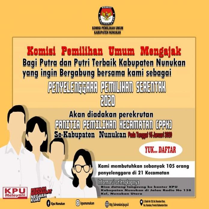 KAYANTARA.COM, NUNUKAN– Sejatinya, perekrutan Panitia Pemilihan Kecamatan (PPK) dimulai 15 Januari 2020.Ini berdasarkan PKPU No.16 Tahun 2019 tentang Tahapan Pemilihan Kepala Daerah serentak tahun 2020, dan PKPU 3 Tahun 2018 tentang Pembentukan Badan Ad Hoc KPU.
