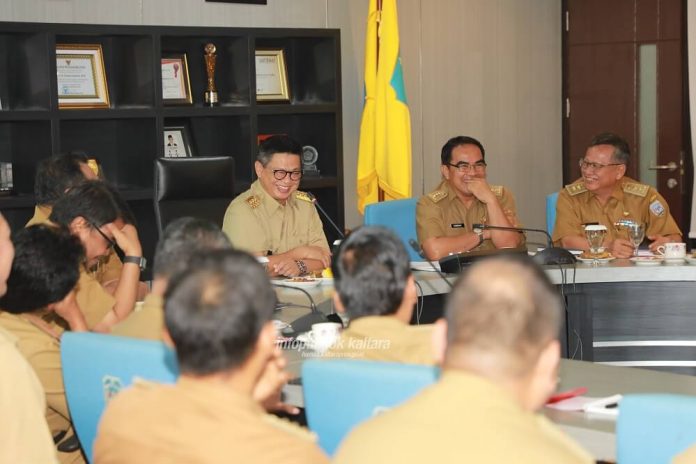 Gubernur Kaltara, Dr H Irianto Lambrie didampingi Sekprov Kaltara H Suriansyah saat memimpin rapat staf, Senin (10/2) sore.