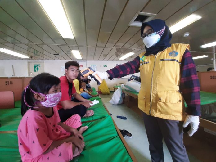 Pemeriksaan kondisi kesehatan penumpang di atas KM Lambelu sebelum turun dari kapal. (Foto: Istimewa)