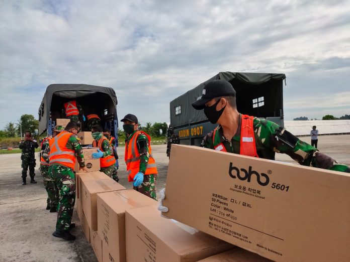 Bantuan dari pemerintah pusat yang diperuntukan kepada tenaga medis ini diangkut melalui pesawat milik TNI Angkatan Udara di Bandara Lanud Anang Busra Tarakan.