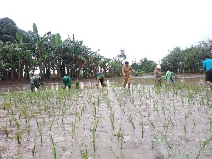 Kegiatan penanaman bibit padi yang menjadi simbolis dimulai gerakan percepatan panen tanam padi dan jagung di Kaltara, Selasa (12/5).