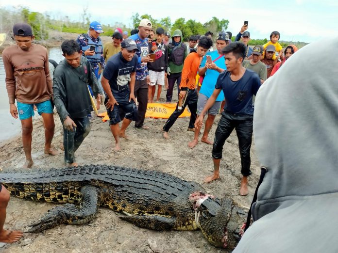Tak lama kemudian tim SAR menemukan buaya yang telah memangsa Fatimah. “Saat itu juga buaya langsung dilumpuhkan dengan cara ditembak oleh personel Polair Polres Tarakan dan Polda Kaltara,” jelasnya.