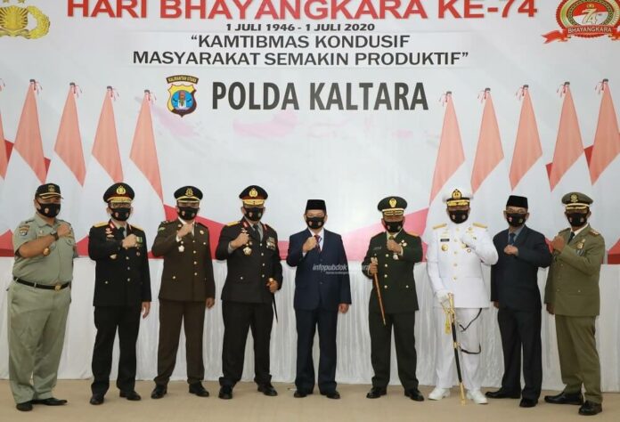 Upacara diikuti oleh seluruh jajaran Polda se-Indonesia. Di Kaltara, meski berlangsung sederhana di tengah kondisi pandemi Covid-19, hari ulang tahun Polri yang mengusung tema “Kamtibmas Kondusif, Rakyat semakin Produktif” ini, berjalan dengan khidmat.