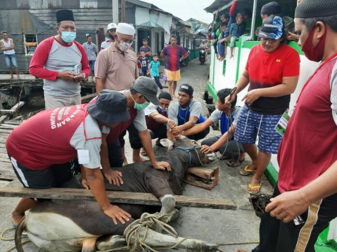 KAYANTARA.COM, TARAKAN – Sebanyak 5 ekor hewan kurban sapi dan 10 kambing dalam perayaan Iduladha 1441 hijriah/2020 masehi telah disembelih, Jumat (31/7).