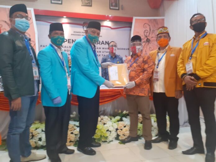 Ketua DPD Hanura Kaltara Ingkong Ala dan PKB Kaltara Herman, bersama seluruh kader, simpatisan dan pengurus partai pengusung dari lima kabupaten kota ikut serta mengantarkan Udin-Undunsyah.