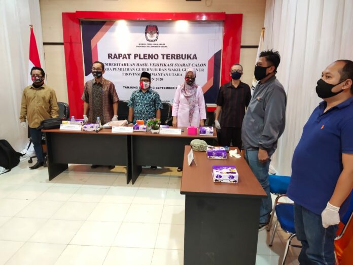 Pengumuman itu disampaikan dalam rapat pleno terbuka KPU Kaltara terkait pemberitahuan hasil verifikasi syarat calon, yang dihadiri seluruh perwakilan pasangan bakal calon, Minggu (13/9).