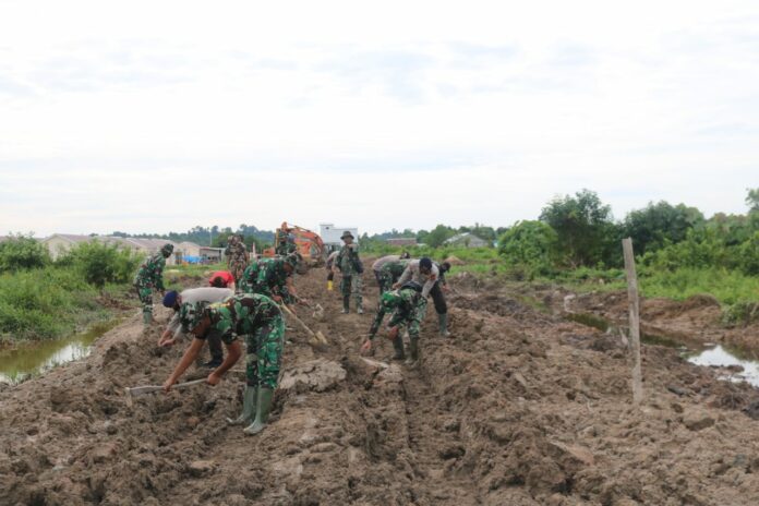 Untuk menyelesaikan proyek yang dijadikan unggulan dalam TMMD reguler ke 109 oleh Kodim 0907 Tarakan, prajurit di lapangan terus optimalkan pengerjaan badan jalan untuk memperlancar pengedropan material, Selasa (6/10/2020).