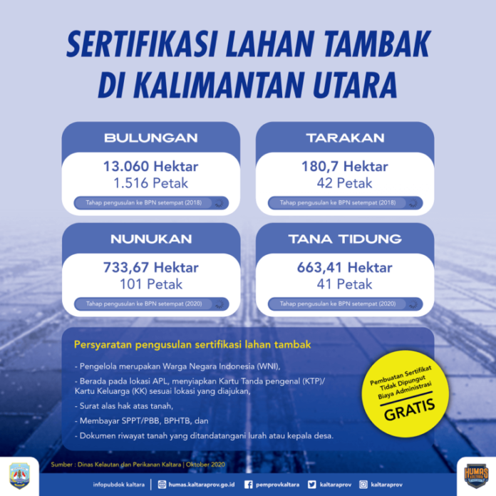 “Pemprov Kaltara, melalui DKP terus melakukan pendataan by name by address lahan tambak yang tersebar di Kabupaten Bulungan, Nunukan, Tana Tidung dan Kota Tarakan,” kata Syahrullah, Minggu (18/10).