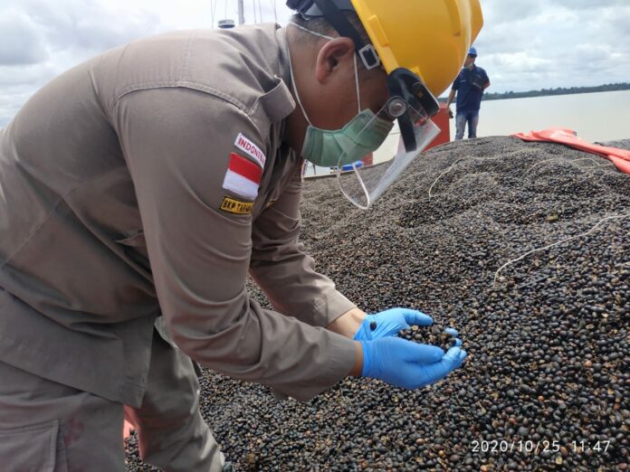 Karantina Pertanian Tarakan melakukan pemeriksaan 1.113,16 ton palm kernel milik PT. Andhika Jaya Abadi yang akan di ekspor ke Tawau, Sabah, Malaysia, Senin (26/10/2020).