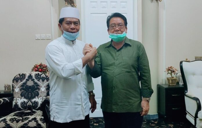 Calon gubernur Kaltara nomor urut 3 Zainal Arifin Paliwang saat foto bersama dengan mantan wakil bupati Bulungan dua periode Liet Ingai di kediamannya di Tanjung Selor, belum lama ini.
