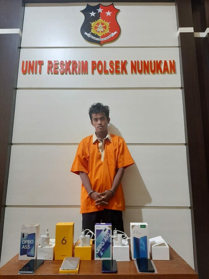 Pelaku dibekuk Unit Reskrim Polsek Nunukan atas dasar laporan dari pemilik konter HP ke Polsek Nunukan pada 12 Oktober lalu.
