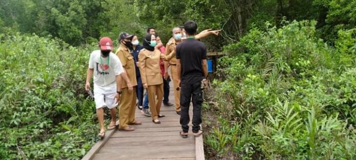 KAYANTARA.COM, NUNUKAN – Penasaran dengan keberadaan taman wisata mangrove di belakang Kompleks Perkantoran Gabungan Dinas (Gadis) I Sedadap, kelurahan Nunukan Selatan yang dipresentasikan oleh Kepala Dinas Pariwisata Kepemudaan dan Olahraga Drs Syafarudin dalam Rapat Koordinasi Bidang Ekonomi, Bupati Laura Hj. Asmin Laura Hafid menyempatkan diri mendatangi tempat wisata tersebut seusai memimpin rapat terbatas bidang perekonomian di Kantor Bupati Nunukan, Selasa (19/1).