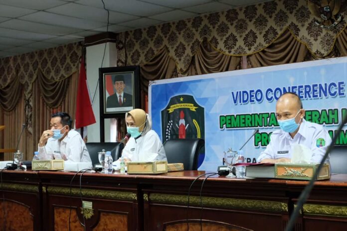 Bupati Nunukan Hj Asmin Laura Hafid saat memimpin rapat secara virtual persiapan program vaksin Covid-19 di ruang pertemuan.