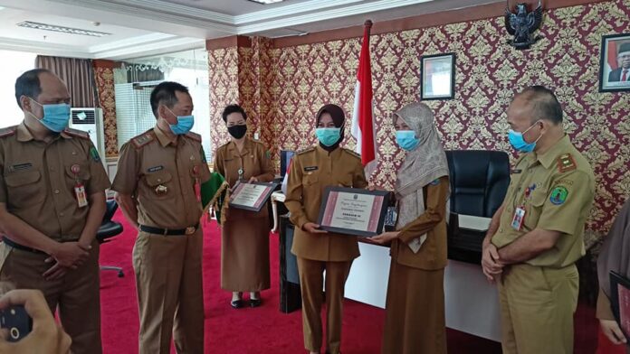 KAYANTARA.COM, NUNUKAN – Bupati Nunukan Hj. Asmin Laura Hafid, S.E., M.M menyerahkan secara langsung Piagam Penghargaan Standar Pelayanan Minimal (SPM) Kesehatan Terbaik Tahun 2020 kepada 3 Puskesmas yang mendapat skor/nilai terbaik di ruang kerjanya, selasa (16/2)