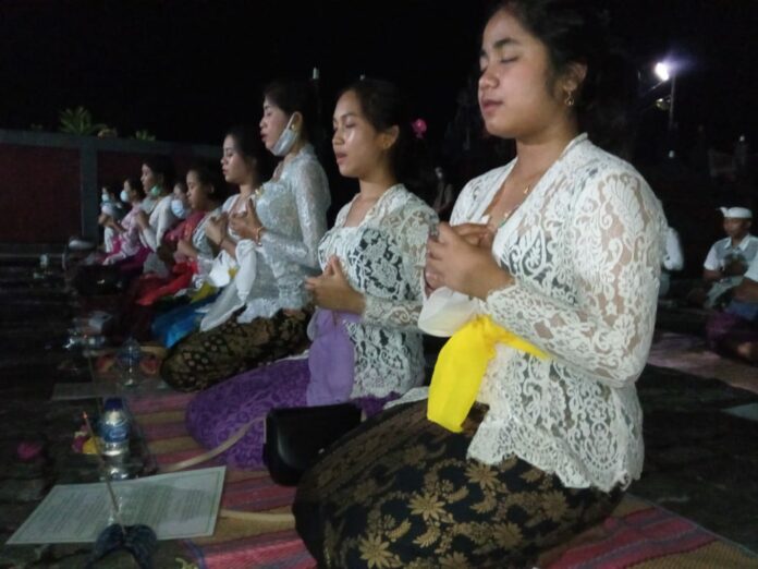 Dalam ritual Melasti, umat Hindu mengawalinya dengan memohon doa kepada Sang Hyang Widho agar mereka diberi kekuatan saat melaksanakan Nyepi. Selama melakukan ritual ini, umat Hindu akan melakukan sembahyang di laut.