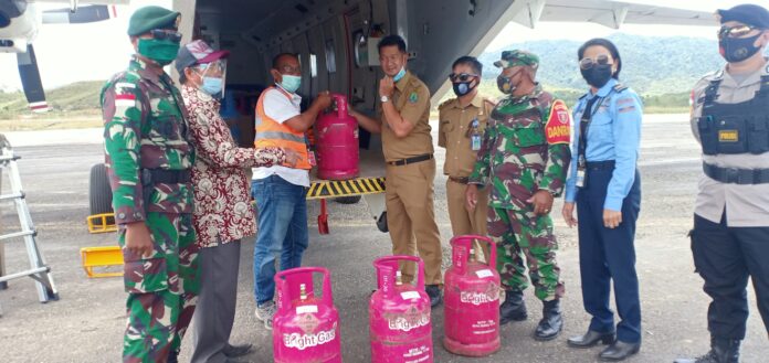 Pengiriman tabung LPG 12 kg ke Krayan yang diangkut pesawat Casa, belum lama ini. (Foto: Istimewa)