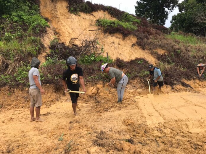 Salah satu tokoh masyarakat desa Jelarai, Tasa Gung mengungkapkan, puluhan warga berbekal alat seadanya berinisiatif  membersihkan material longsoran yang menutup satu-satunya akses jalan tersebut secara bergotong royong.