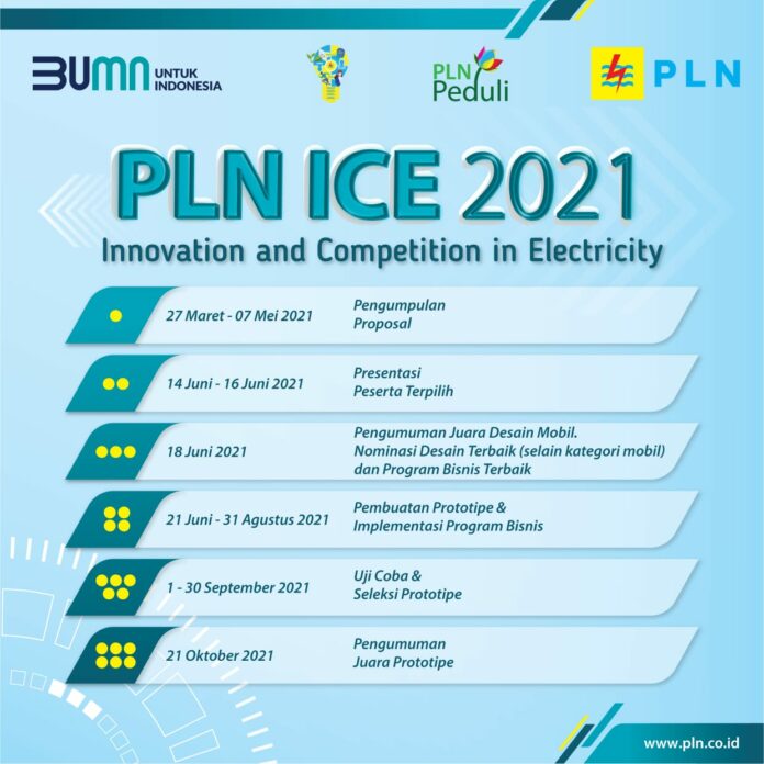PLN ICE merupakan gelaran tahunan program PLN Peduli yang dilaksanakan oleh PLN. Tahun sebelumnya, PLN ICE (Innovation, Conference, and Exhibition) 2020 menggelar Lomba Karya Inovasi, Konferensi dan Pameran bertema Listrik untuk Pencapaian Sustainable Development Goal’s (SDG’s). Untuk informasi lebih lanjut dapat mengunjungi situs web ice.pln.co.id atau menghubungi panitia melalui email [email protected], Instagram @PLN_Puslitbang, atau melalui Whatsapp ke nomor 0813 8724 1265. (*/kt1)