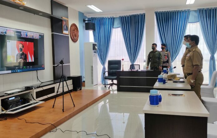 KAYANTARA.COM,TARAKAN-Gubernur Kalimantan Utara (Kaltara) Zainal Arifin Paliwang didampingi Wakil Gubernur (Wagub) Yansen TP menghadiri Rapat Koordinasi (Rakor) Kepala Daerah/Wakil Kepala Daerah hasil Pilkada Serentak Tahun 2020 bersama Presiden Republik Indonesia Joko Widodo secara virtual bertempat di ruang pertemuan Mako Lantamal Tarakan, Rabu (14/4/2021)