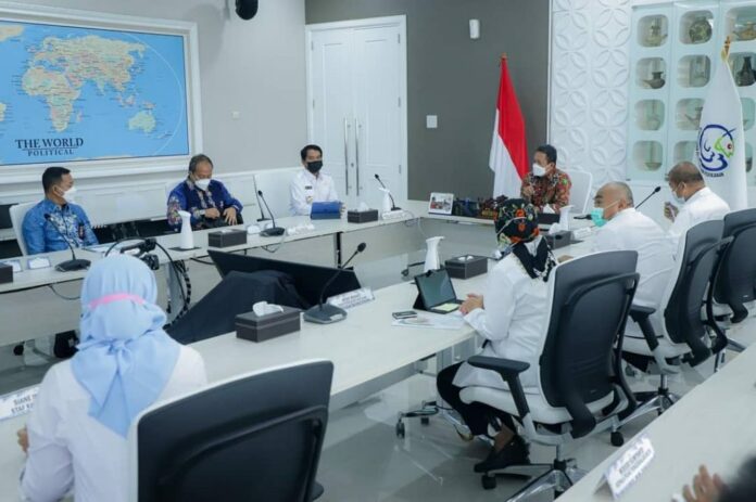 KAYANTARA.COM, JAKARTA– Menteri Kelautan dan Perikanan Sakti Wahyu Trenggono didampingi Plt Dirjen Perikanan Tangkap Muhammad Zaini, Dirjen Perikanan Budidaya Slamet Soebjakto, Dirjen Penguatan Daya Saing Produk Kelautan dan Perikanan Artati Widiarti dan Dirjen Pengelolaan Ruang Laut TB Haeru menerima kunjungan kerja Gubernur Kalimantan Utara (Kaltara), Zainal Arifin Paliwang di Kantor Kementerian Kelautan dan Perikanan, Jakarta Pusat, Senin (19/4/2021).