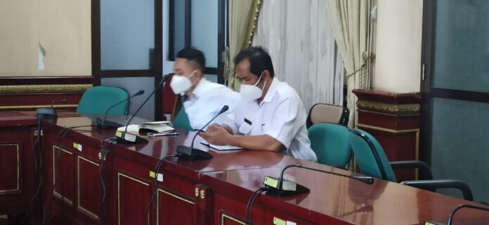 Kepala BPKAD Bulungan P Tumanggor saat mengikuti rapat koordinasi dengan Ditjen Bina Keuangan Daerah Kemendagri RI, Drs Rooy John E Salamony secara zoom meeting di Ruang Rapat Sekda, Rabu (21/4).