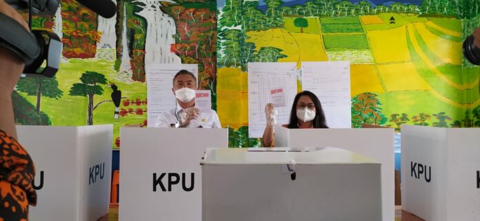 Tak hanya hadir sekaligus memantau jalannya proses pemungutan suara, Wempi-Jakaria bersama para istri juga turut menyalurkan hak pilihanya di Desa Malinau Kota.