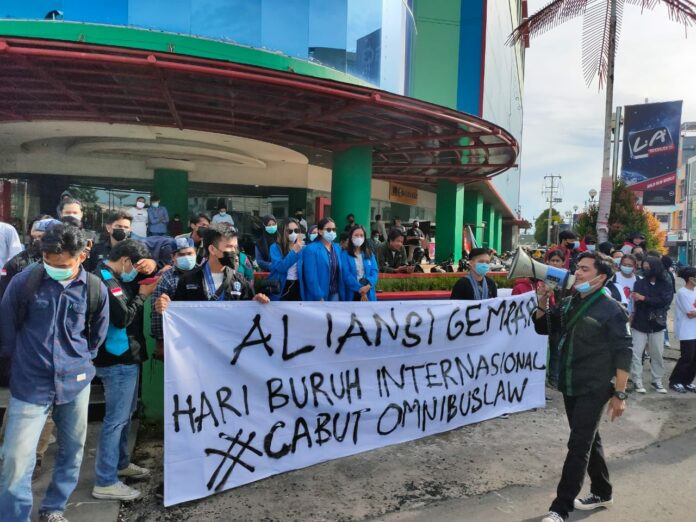 KAYANTARA.COM, TARAKAN-Ratusan mahasiswa yang tergabung dalam Aliansi Badan Eksekutif Mahasiswa (BEM) dan sejumlah lembaga di Kota Tarakan ikut memperingati Hari Buruh Internasional atau Mau Day, Sabtu (1/5/2021).