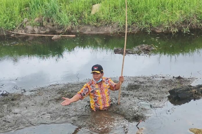 Kemudian, mantan Wakapolda Kaltara ini pun sempat berjibaku ke bagian rawa lantaran ingin mengukur kedalaman rawa dengan menggunakan sebatang bambu, namun ikut tenggelam hingga ke bagian dada. Kedalaman rawa diperkirakan 2 meter.