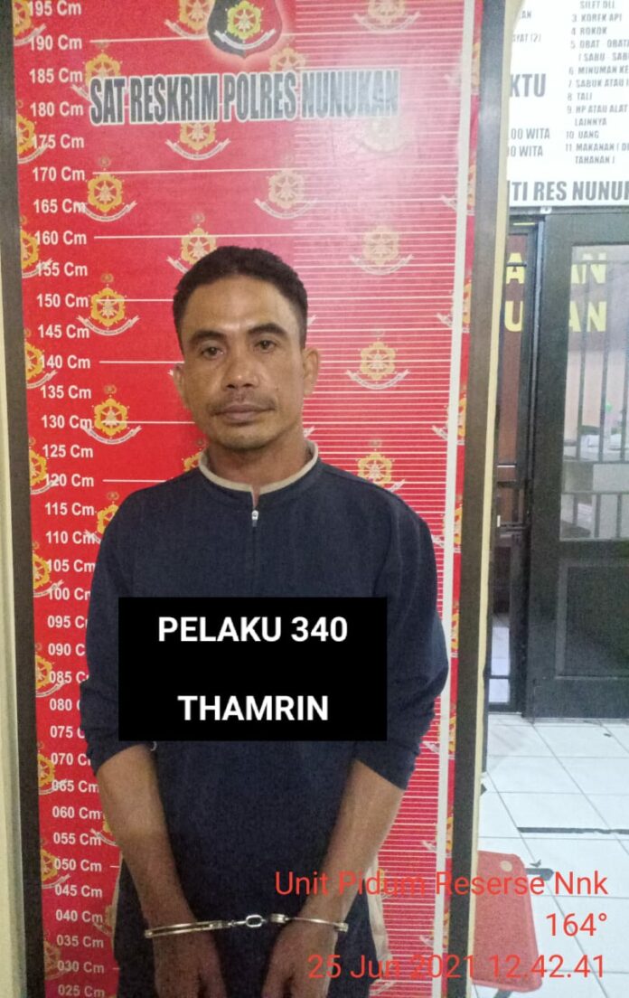 KAYANTARA.COM, NUNUKAN – Dipicu rasa cembur, Thamrin (46) warga Jalan Sei Fatimah, Kabupaten Nunukan, Kalimantan Utara (Kaltara) nekat menghabisi nyawa salah satu pekerja Agen Premium dan Minyak Solar (APMS) di Nunukan, Jumat (25/6/2021) sekitar pukul 10.00 Wita.