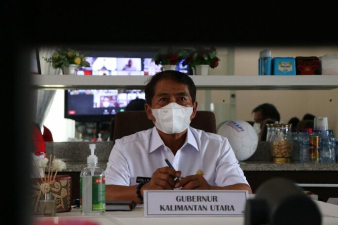 Gubernur saat memimpin Rapat Optimalisasi Penanganan Covid-19 dan Percepatan Vaksinasi Serta Tindak Lanjut Penerapan PPKM Level 4 di Wilayah Provinsi Kalimantan Utara, Rabu (28/7/2021)