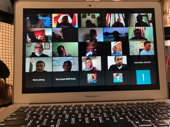 Rapat pleno via online yang diikuti oleh para ketua pengurus SMSI daerah dan pengurus lainnya yang tersebar di 34 provinsi.