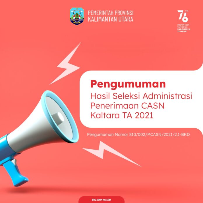 Di mana informasi itu tertuang dalam Surat Gubernur Kalimantan Utara, No. 810/002/P.CASN/2021/2.1-BKD tentang Peserta Lulus Seleksi Administrasi Pegawai Aparatur Sipil Negara di Lingkungan Pemerintah Provinsi Kalimantan Utara Tahun Anggaran 2021.
