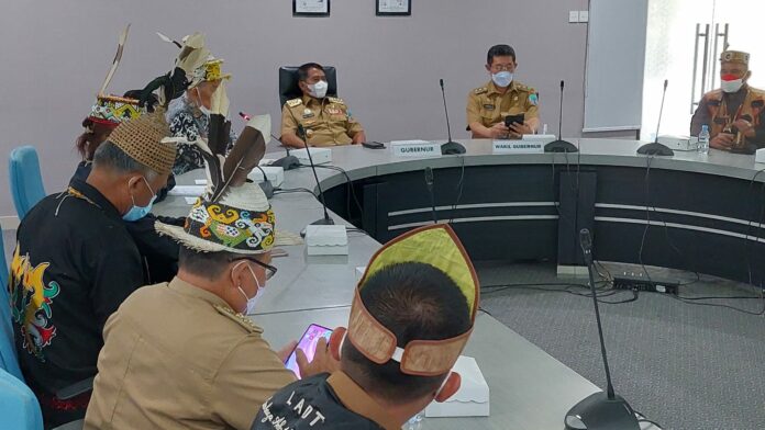 KAYANTARA.COM, TANJUNG SELOR – Ketua Lembaga Adat Dayak Provinsi Kalimantan Utara (Kaltara) bersama dengan beberapa tokoh adat dan ketua adat dari berbagai sub suku, melakukan pertemuan bersama dengan Gubernur Drs H.Zainal A.Paliwang, SH, M.Hum dan Wakil Gubernur Dr Yansen TP, di Ruang Rapat Kantor Gubernur. Selasa, (28/9/2021).