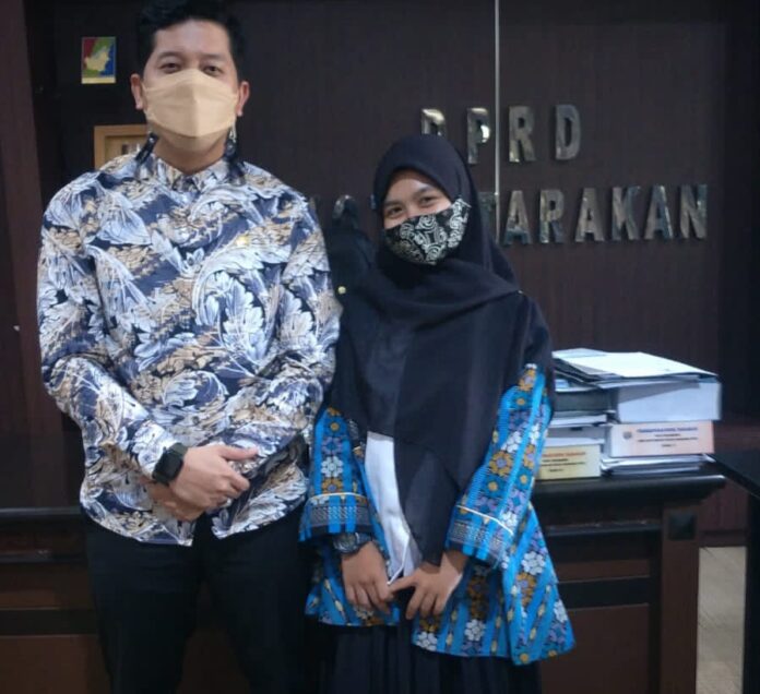 Hal ini disampaikannya usai menerima kunjungan seorang pelajar kelas XII SMA Muhammadiyah Tarakan, Adinda Rahmadhani, di kantornya setelah rapat dengar pendapat atau hearing mengenai persoalan sampah bersama Komisi II, Selasa (12/10/2021) kemarin.