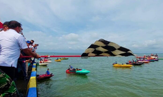 Gubernur Kaltara saat membuka ‘IPSS Race Boat Cup I’ tahun 2021, di Dermaga Dit. Polisi Air dan Udara (Ditpolairud) Kaltara, Juata Laut, di Tarakan, kemarin (13/10).
