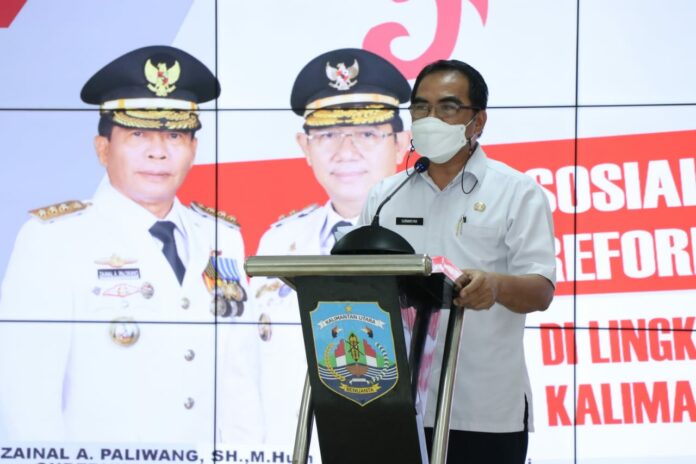 KAYANTARA.COM, TANJUNG SELOR – Mewakili Gubernur, Sekretaris Daerah Provinsi Kalimantan Utara (Kaltara), Suriansyah membuka kegiatan Sosialisasi Area Perubahan Reformasi Birokrasi Terhadap Peningkatan Area Pengawasan dan Pelayanan Publik Provinsi Kaltara tahun 2021 di Ruang Serbaguna Gedung Gadis, Rabu (15/12).
