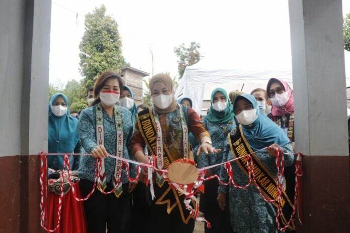 KAYANTARA.COM, LUMBIS -Bunda PAUD (Pendidikan Anak Usia Dini) Provinsi Kalimantan Utara (Kaltara) Rachmawati Zainal, SH bersama Wakil Ketua Tim Penggerak dan Pemberdayaan Kesejahteraan Keluarga (TP-PKK) Kaltara Ping Yansen meresmikan PAUD Sulon Pelangi Perbatasan, Rabu (19/01/2022) siang.