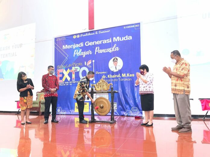 KAYANTARA.COM, TARAKAN – Dengan ditandai oleh pemukulan gong, Wali Kota Tarakan, dr. H. Khairul, M.Kes., membuka gelaran Education Expo 2022 yang diselenggarakan oleh Sekolah Kristen Tunas Kasih Tarakan pada mulai 19 Februari 2022 hingga 22 April 2022 mendatang.