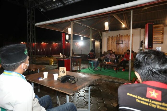 KAYANTARA. COM, TARAKAN – Wali Kota Tarakan dr. Khairul, M.Kes menjadi narasumber Roadshow Konferkot III (Liga Mahasiswa Nasional Untuk Demokrasi (LMND) Tarakan dengan tema Smart People menuju Smart City, di Kedai Doremi Tarakan.