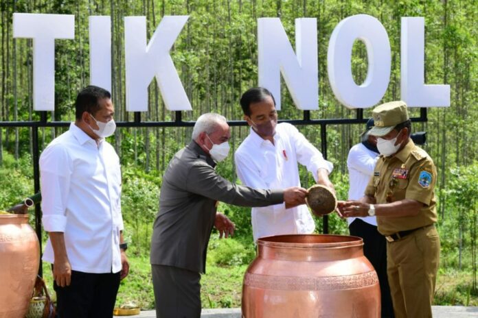 KAYANTARA.COM, PENAJAM – Gubernur Kalimantan Utara, Drs H Zainal A Paliwang SH, M.Hum mengikuti Prosesi Kendi Nusantara bersama Presiden Joko Widodo. Prosesi Kendi Nusantara sendiri adalah proses penyatuan tanah dan air dari provinsi se-Indonesia yang diikuti oleh 34 Gubernur di Titik Nol Ibu Kota Negara (IKN) Nusantara di Kecamatan Sepaku, Penajam Paser Utara, Senin (14/3/2022).