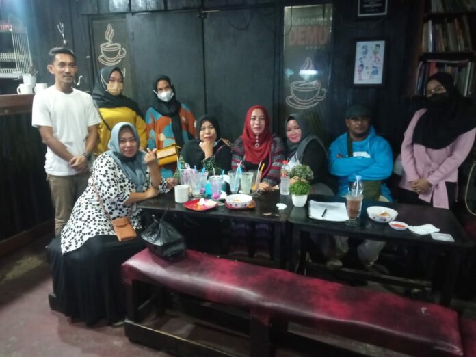Pertemuan Sahabat Laura di Kafe Demo Crazy Kelurahan Sebengkok pada Senin (21/3/2021) malam tadi, juga dihadiri langsung oleh Asmin Laura Hafid via video call WhatsApp.