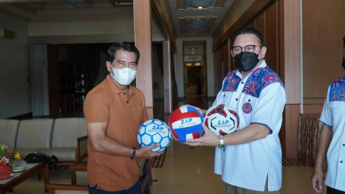 Dalam kesempatan itu, Gubernur Zainal juga menyerahkan bantuan perangkat olahraga sepakbola kepada pengurus Koni Kabupaten Malinau, yang diterima langsung oleh Ketua KONI Malinau Dr Tomi Labo M. Si.