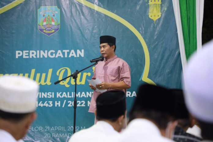 KAYANTARA.COM, TANJUNG SELOR – Gubernur Kalimantan Utara (Kaltara) Zainal A. Paliwang S.H. M.hum bersama jajaran Forkopimda peringati malam Nuzulul Quran dengan mengaji bersama di Pendopo Rumah Jabatan Gubernur Kaltara, Kamis (21/4/2022).