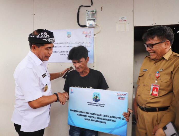 Seperti diketahui, tahun ini Pemprov Kaltara memberikan bantuan pasang listrik gratis kepada 50 kepala keluarga (KK) kurang mampu, baik itu sesuai data terpadu kesejahteraan social (DTKS) maupun yang belum terdaftar. Gubernur menyebut, bantuan pasang listrik gratis ini terdiri dari pengadaan dan pemasangan KWH meter berdaya 900 kilo volt ampere dan kelengkapannya.
