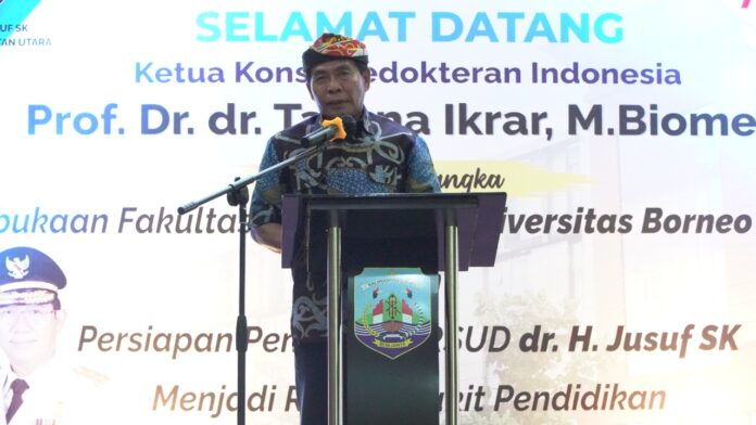 Dalam sambutnya, Gubernur mengungkapkan bahwa tujuan dari kedatangan Ketua KKI ke Kaltara dalam rangka Pembukaan Fakultas Kedokteran UBT, dan Persiapan Penetapan RSUD dr H Jusuf SK, menjadi Rumah Sakit Pendidikan.