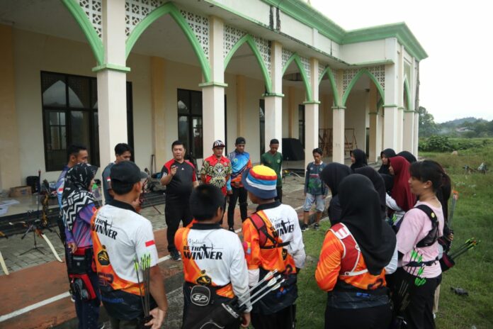 KAYANTARA.COM, MALINAU – Ketua Perpani Malinau Oktrianus Charles menyempatkan diri bergabung dan memberi suport serta arahan kepada atlet panahan Malinau yang terus melaksanakan latihan rutin di halaman Masjid Islamic Center Desa Malinau Seberang, Minggu (25/9) sore.