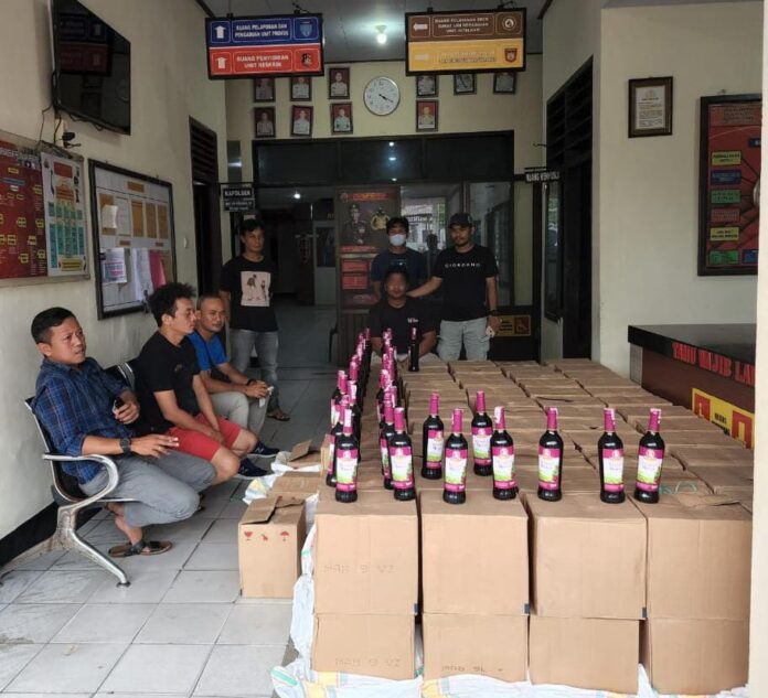 KAYANTARA.COM, NUNUKAN – Ribuan botol minuman keras (miras) jenis anggur merah berhasil digagalkan peredarannya oleh jajaran Polres Nunukan di Jalan Arif Rahman Hakim, Nunukan, Minggu (23/10/2022).
