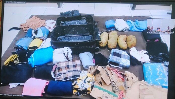 Berdasarkan foto yang dibagikan Kabid Humas Polda Kaltara telah terungkap bahwa isi koper dan kardus tersebut adalah cempedak dan pakaian.